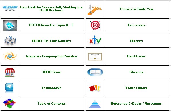 UDOO has 100’s of topics, exercises, quizzes and dozens of certificates you can obtain to support your knowledge and experience of mastering working in small businesses. Try some of the basic ideas from UDOO for 30 days and see if you experience immediate positive results.  Then take a second step when you are ready, then a third and so forth.  UDOO aims at becoming your “personal guide” available when and where you need it.